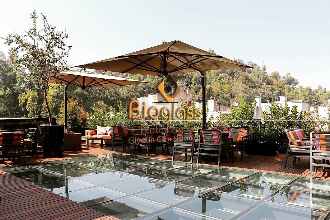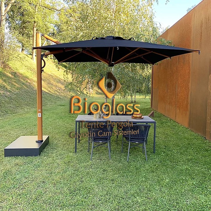 Yılların verdiği tecrübeyle şemsiye sektöründeki ihtiyaçlara yönelik estetik, kaliteli ve sağlamlıktan ödün vermeyen Bio Glass, otel şemsiyeleri, restaurant şemsiyeleri, plaj şemsiyeleri, havuz şemsiyeleri gibi büyük ebatlı şemsiye imalatı yapmaktadır. Müşteri memnuniyeti, satış sonrası destek gibi konularda hassasiyeti, üst düzeyde tutan Bio Glass siz değerli dostlarımızdan aldığı destek ile yoluna devam etmektedir. Her sezon yeni model ve ölçüler ile farklı şemsiye modelleri sunan Bio Glass, şemsiyenin kullanılacağı bölgenin özelliğine ve siz değerli müşterilerimizin talebine göre şemsiye kumaşı seçenekleri sunmaktadır. İmalatın her bir adımında çok detaycı olan Bio Glass, istekleriniz doğrultusunda şekillenebilecek kendine ait bir üretim bandına sahiptir. Sizin istediğiniz ölçüde ve renkte şemsiye üretimini yine sizin seçtiğiniz model ve desendeki şemsiye kumaşlarıyla buluşturup en kısa sürede teslimatını gerçekleştirmektedir.